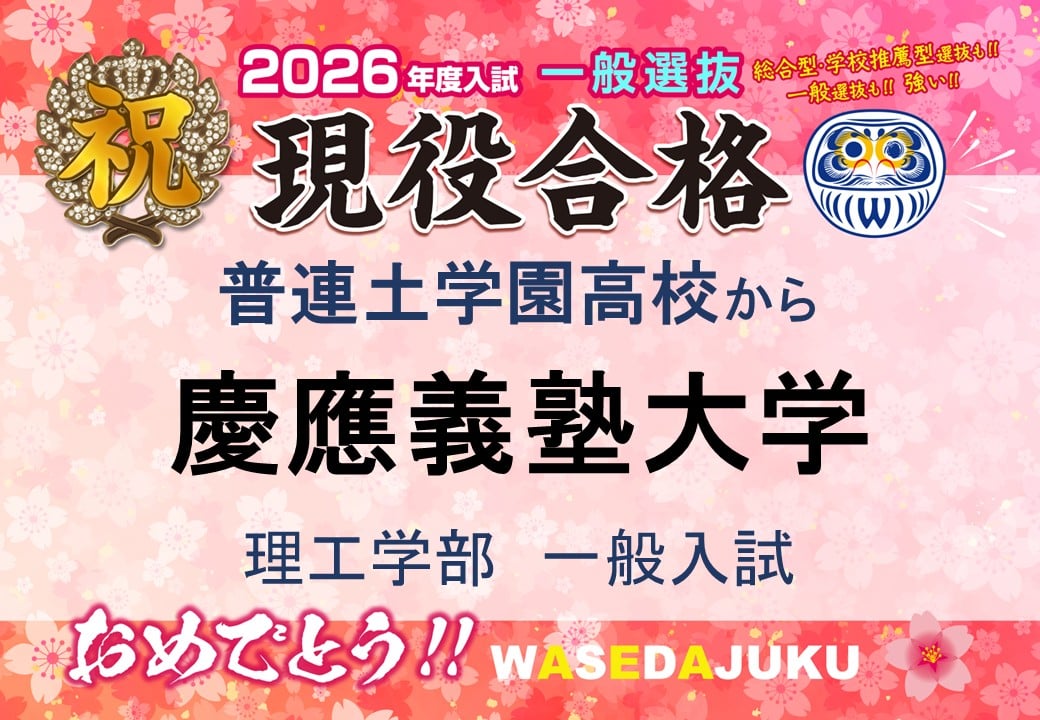 【2026年度入試 現高3生】普連土学園高校から、慶應義塾大学理工学部へ一般入試で現役合格!