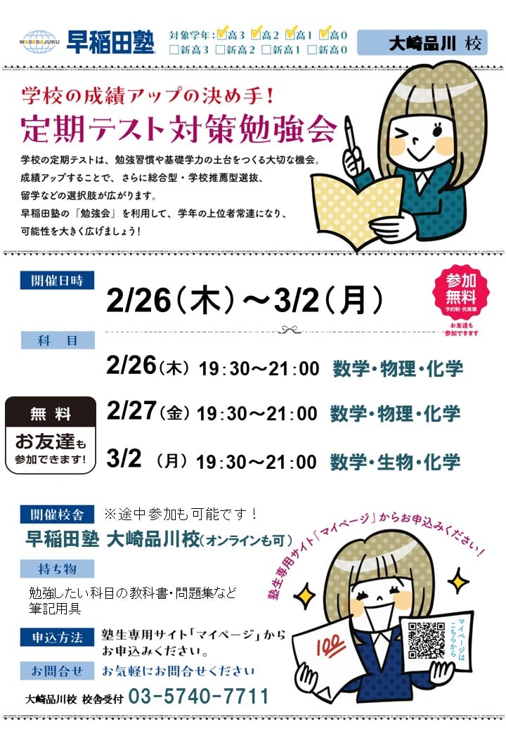 今回のワセダネは定期テスト対策勉強会の開催についてです!