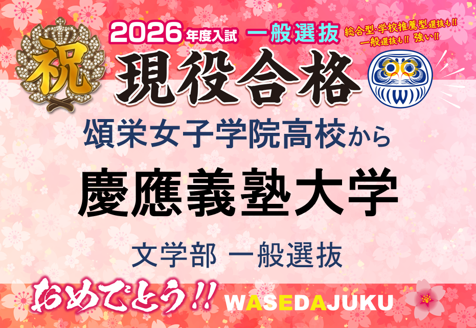 【2026年度入試 現高3生】頌栄女子学院高校から、慶應義塾大学 文学部へ一般選抜で見事現役合格!