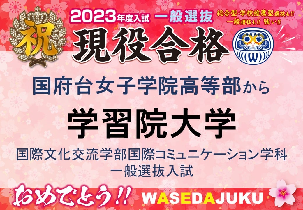 国府台女子学院高等部から、学習院大学国際文化交流学部国際コミュニケーション学科に一般選抜で現役合格です!