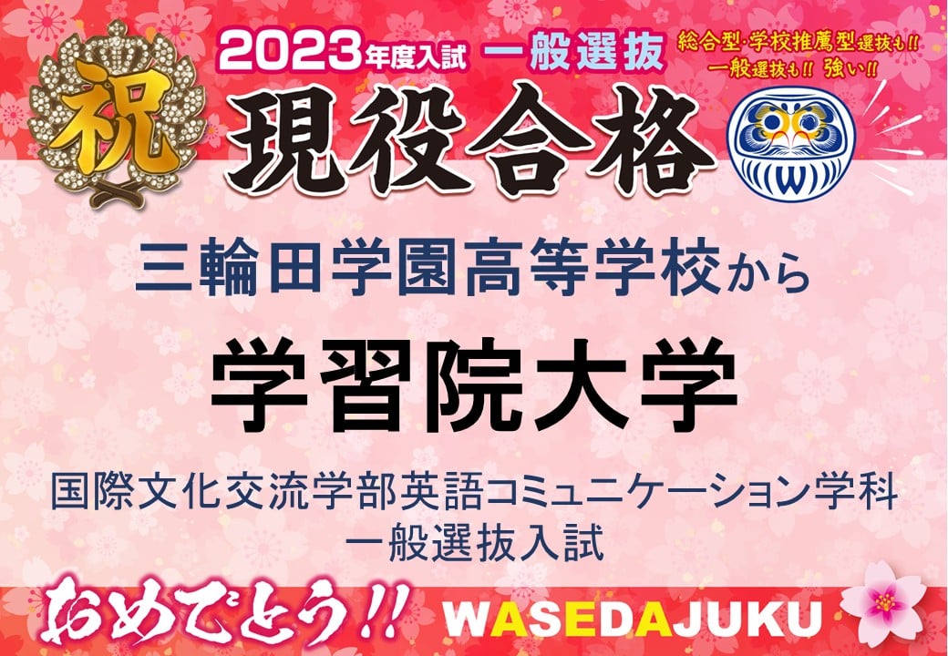 三輪田学園高等学校から、学習院大学国際文化交流学部英語コミュニケーション学科に一般選抜で現役合格です!