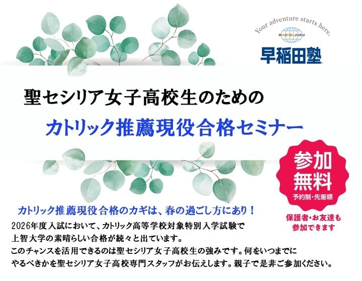 【聖セシリア女子高校生必見!】聖セシリア女子高校生のためのカトリック推薦現役合格セミナー開催のお知らせ