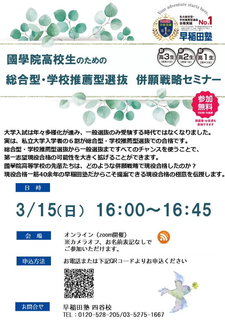 この度、國學院高校生のための総合型・学校推薦型 併願戦略セミナーの開催が決定いたしました!