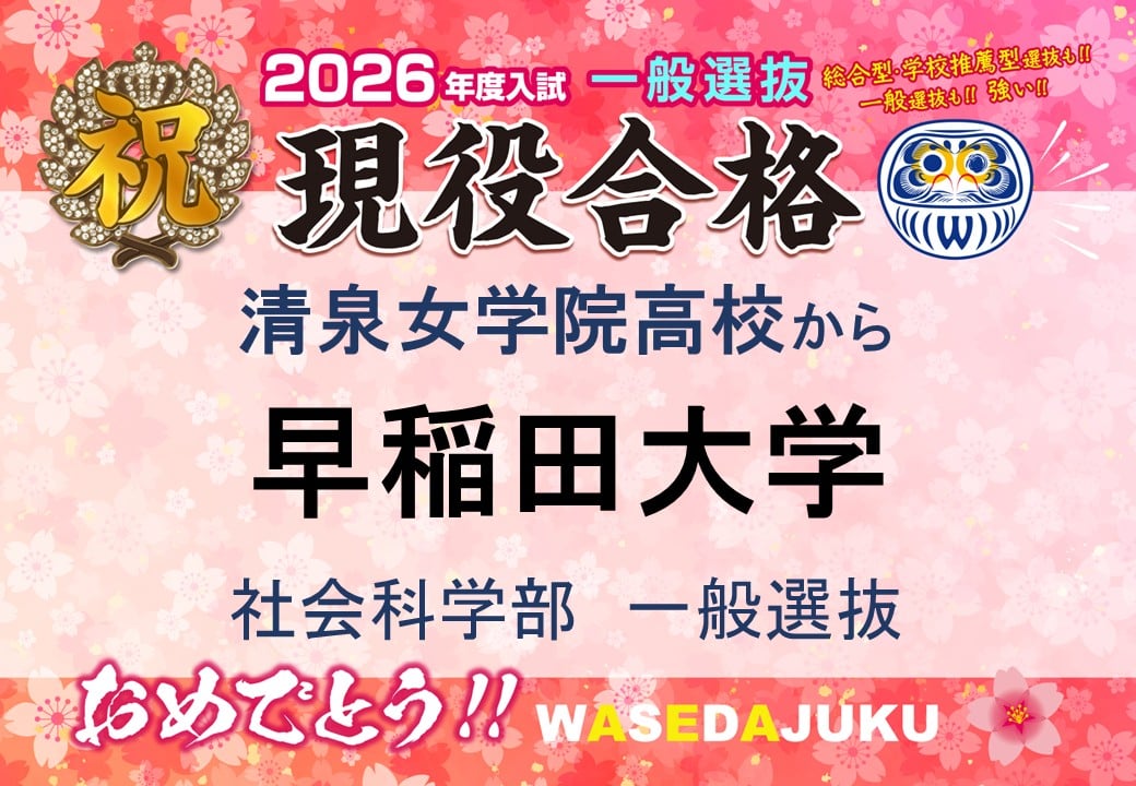 【合格速報】清泉女学院高校から、早稲田大学社会科学部に一般選抜で現役合格です!