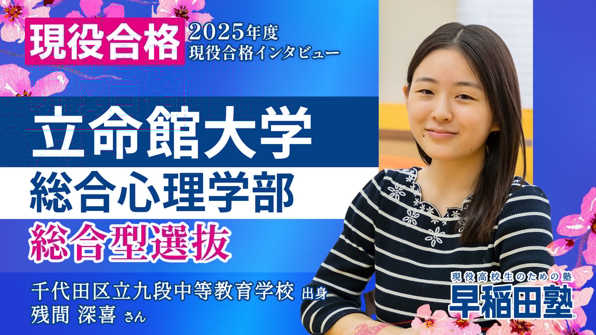 今回は立命館大学 総合心理学部に総合型選抜で合格した残間 深喜さん
