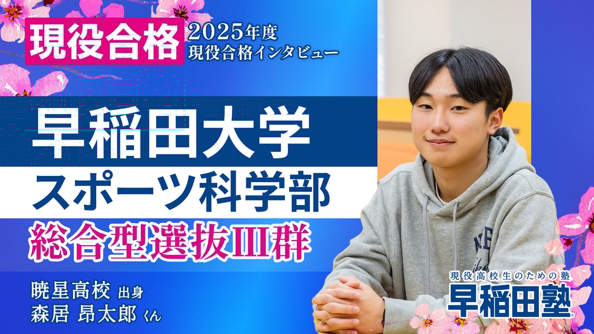 今回は早稲田大学 スポーツ科学部に総合型選抜Ⅲ群で合格した森居 昂太郎くん