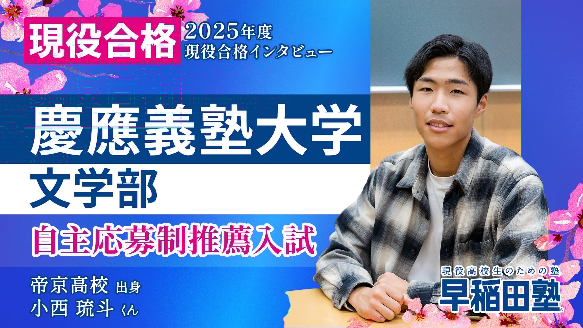 今回は慶應義塾大学 文学部に自主応募制推薦入試で合格した小西 琉斗くん