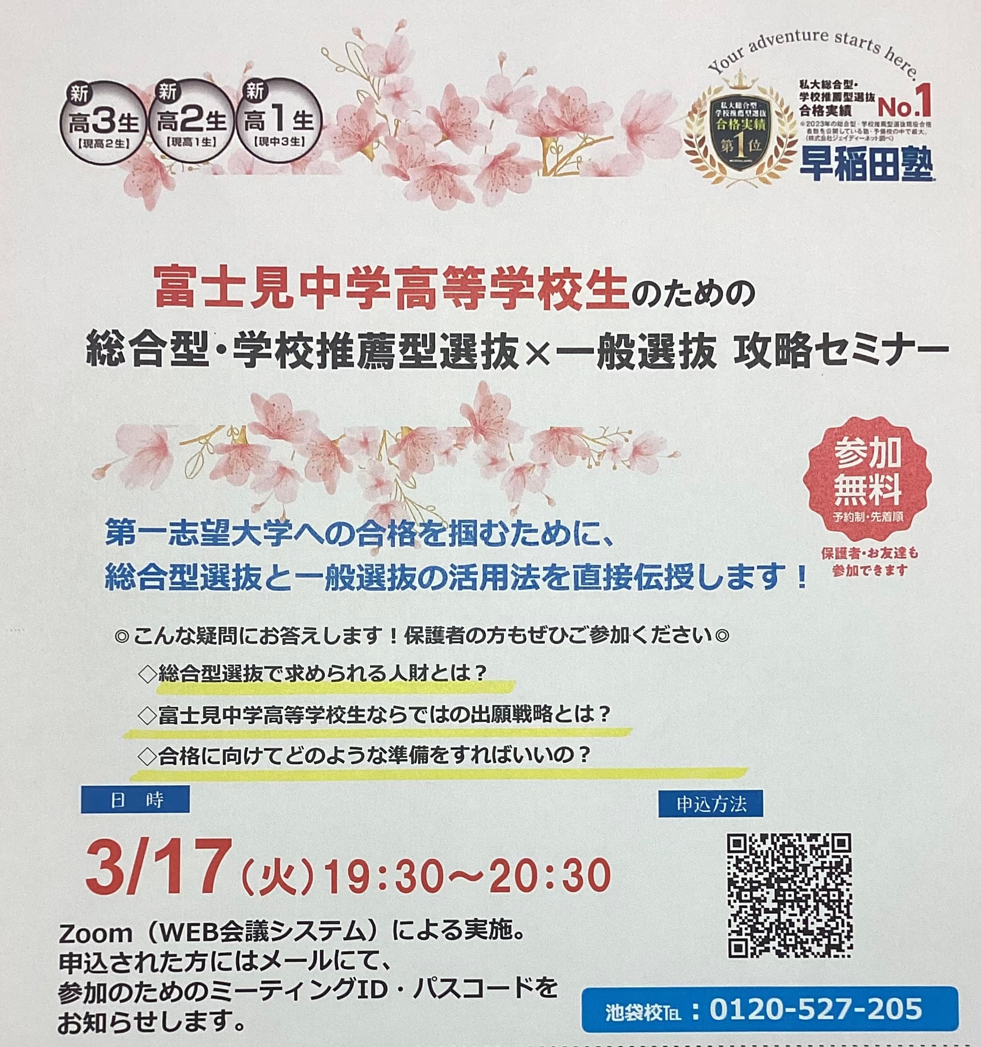 早稲田塾ならではの情報が盛りだくさんですので、富士見中学高等学校生の皆様のご参加を心よりお待ちしています。
