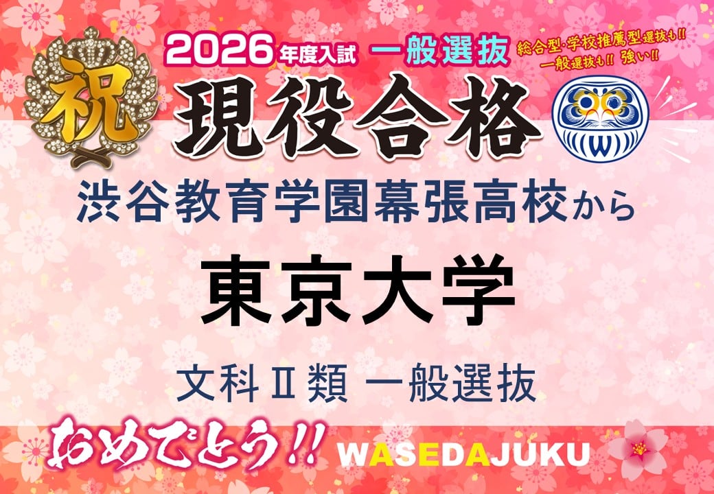 【2026年度入試 現高3生】渋谷教育学園幕張高校から、東京大学 文科Ⅱ類へ 一般選抜で現役合格!