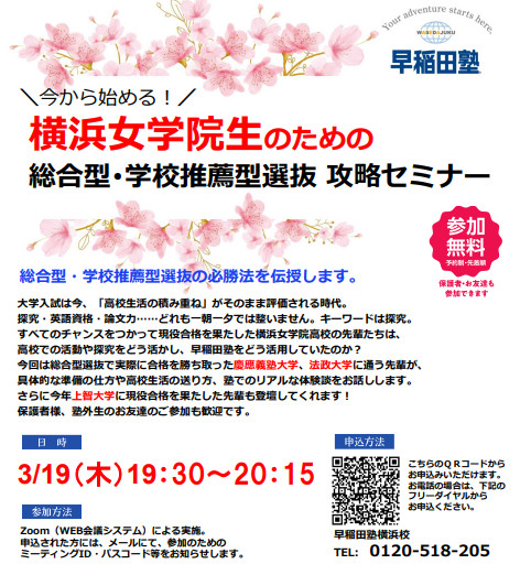 「横浜女学院生のための総合型・学校推薦型選抜 攻略セミナー」についてお知らせします!