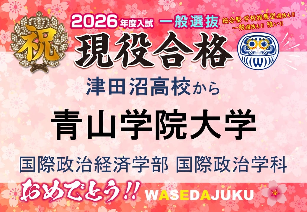 【2026年度入試 津田沼校現役合格速報】津田沼高校から、青山学院大学国際政治経済学部へ一般選抜入試で現役合格!