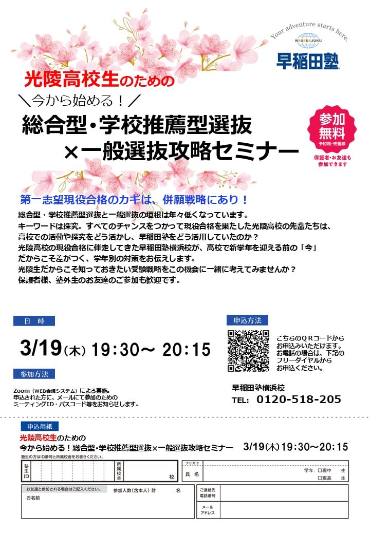 【光陵高校生のための総合型・学校推薦型選抜×一般選抜攻略セミナー】のお知らせ