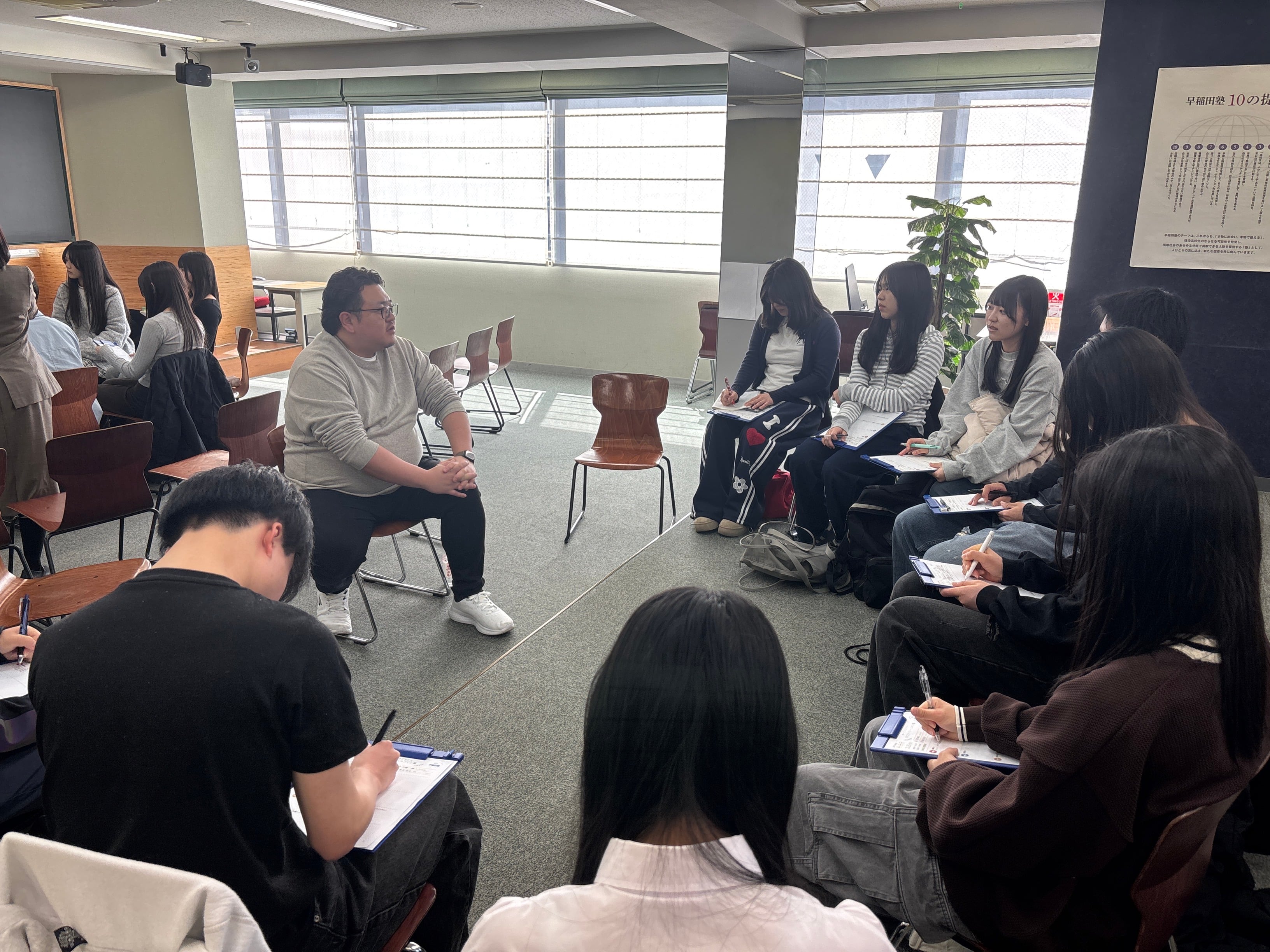 今回は、そんな先輩方をお呼びし、社会のさまざまなフィールドで活躍する先輩方をお招きし、現役の早稲田塾生たちがその先輩方を囲んでトークするセッションが行われました。