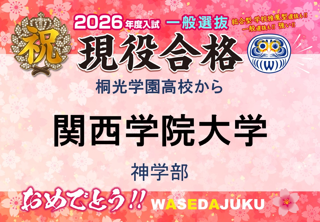 桐光学園高校のTさん、関西学院大に一般選抜で見事合格しました!おめでとうございます!!