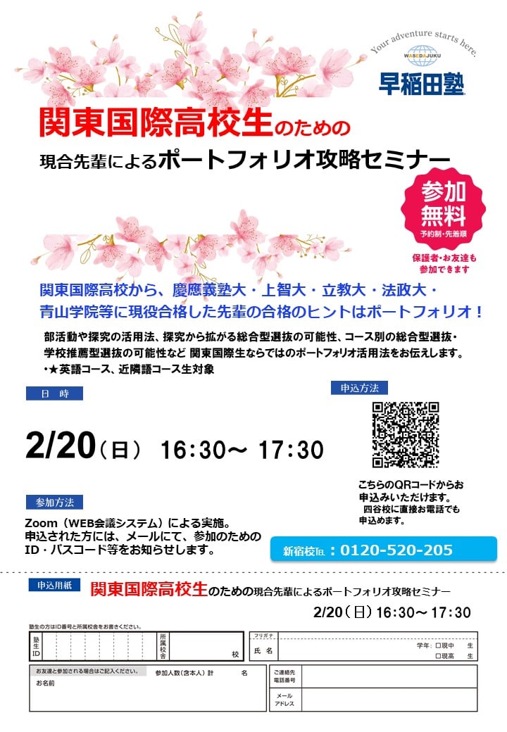 そんな思いからこの度早稲田塾では「関東国際高校生のための現合先輩によるポートフォリオ攻略セミナー」を実施いたします!
