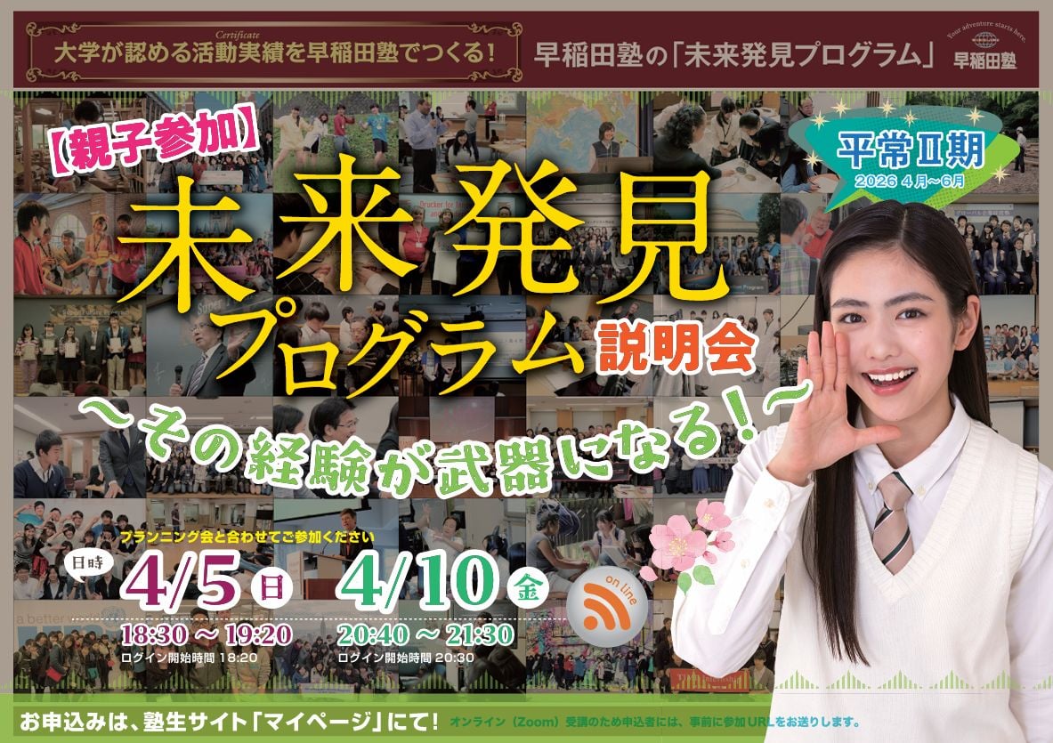 【成長の近道!】「未来発見プログラム説明会」を4/10(金) に開催します!