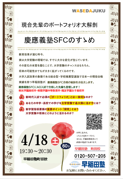 今回のテーマは【SFC志望塾生必見!】慶應義塾SFCのすゝめ開催のお知らせです。