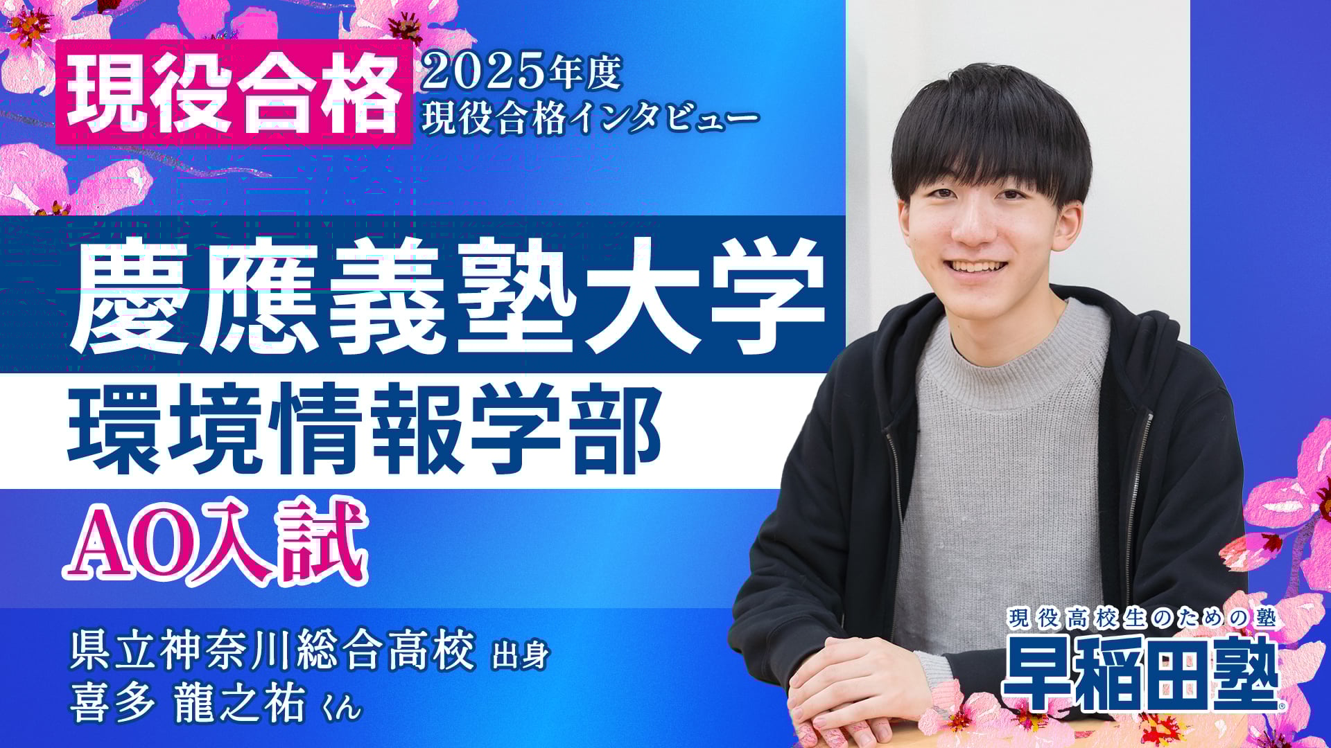 今回は慶應義塾大学 環境情報学部にAO入試で合格した喜多 龍之祐くん