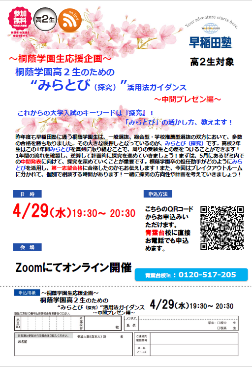 ☆現在、早稲田塾ではオンラインにてさまざまな説明会を行っています! お申込は【こちら】から!