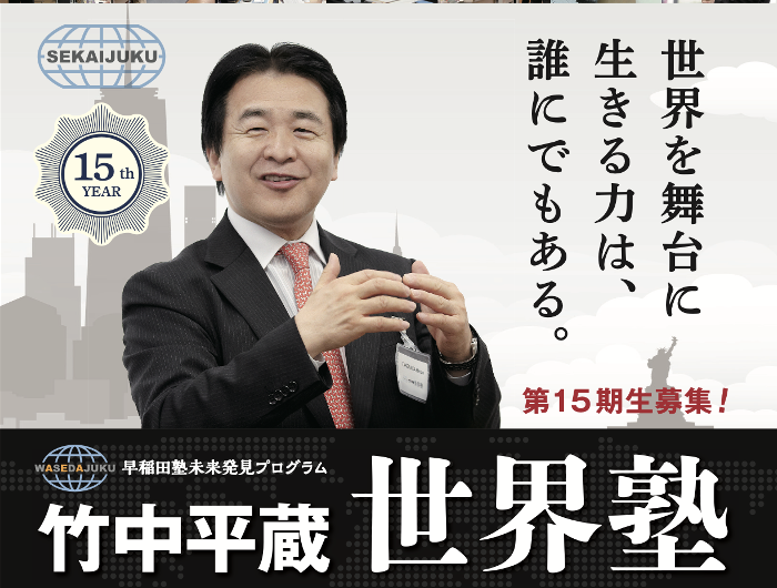竹中平蔵世界塾、間も無く新宿校にてスタートします。