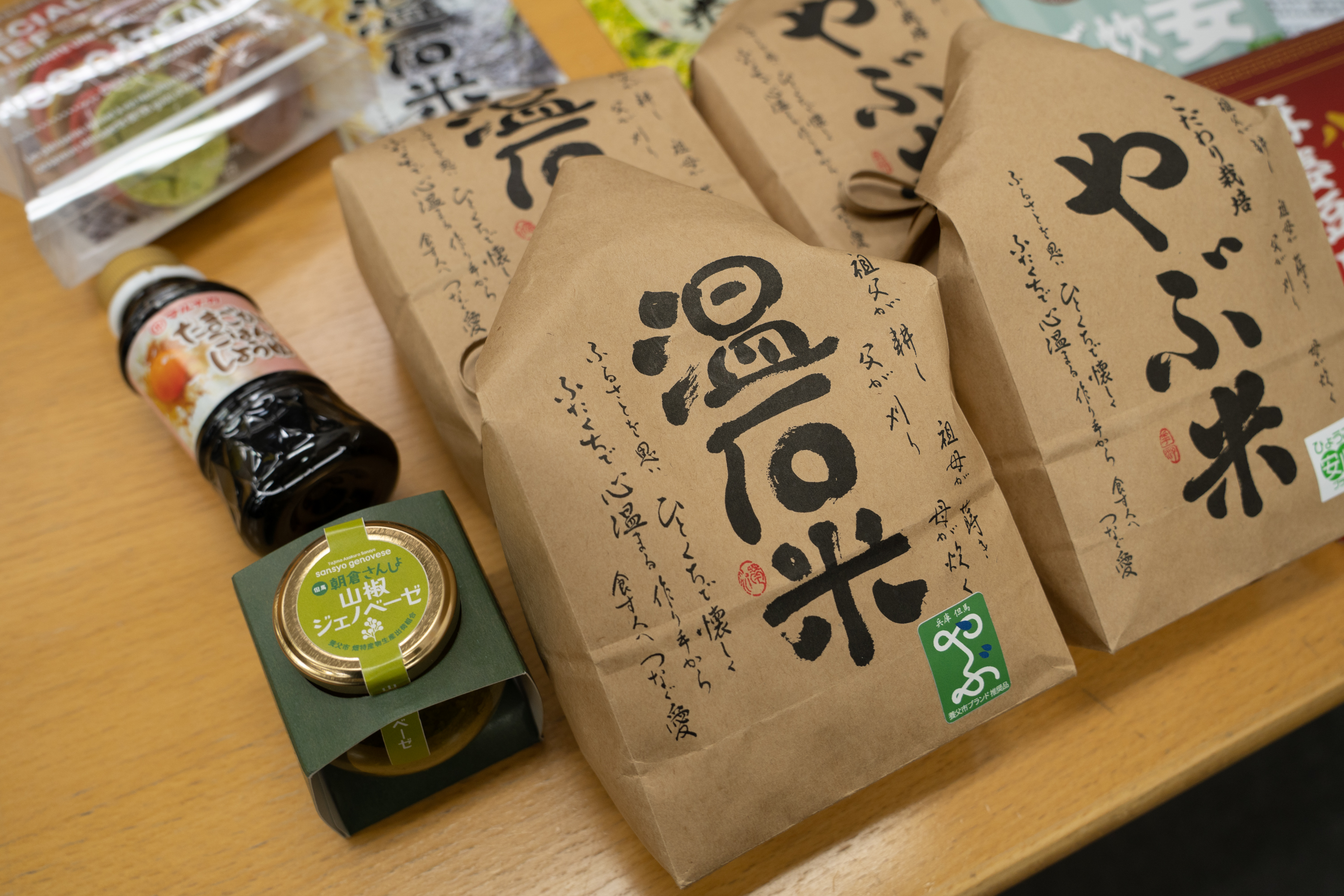 養父市産米のコシヒカリや朝倉さんしょの山椒ジェノベーゼなど養父市の特産品がたくさん入っていました!