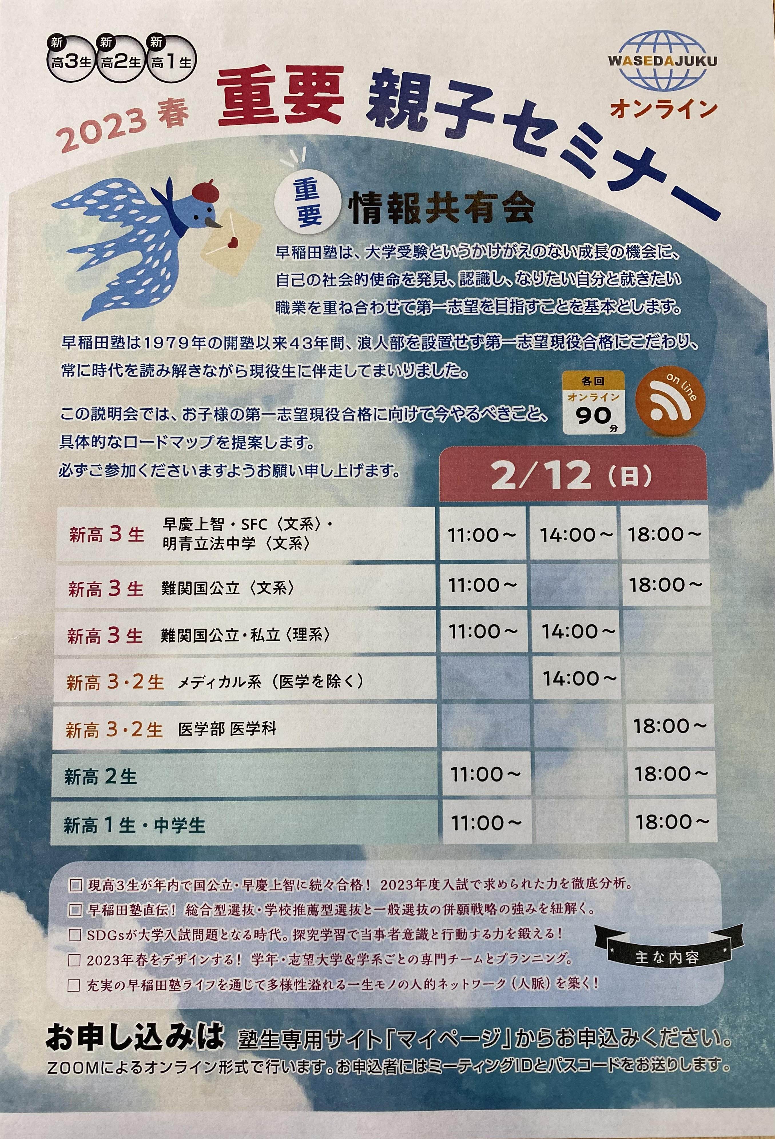 2月12日(日)に親子セミナーがオンラインで開催されます!
