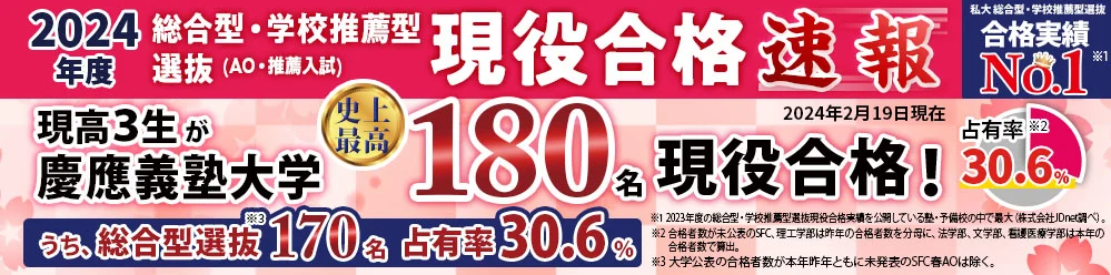 特に早稲田塾は、慶應義塾大学の総合型選抜において占有率30.6%と驚異的な合格実績を誇っています!