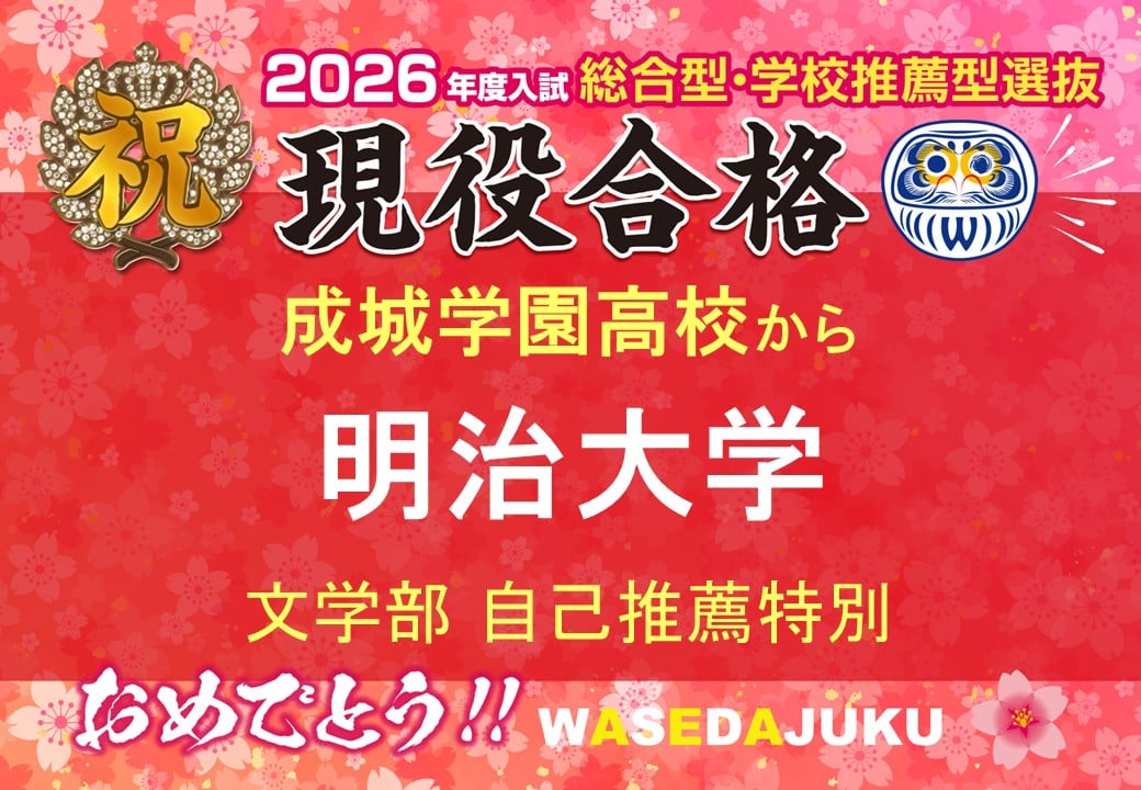 成城学園高校から、明治大学文学部文学科に総合型選抜(自己推薦特別)で見事現役合格!