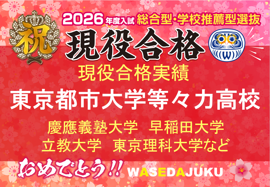 こんにちは!自由が丘校担任助手の高嶋優七(田園調布雙葉高等学校卒・上智大学総合人間科学部社会学科1年)です。東京都市大学等々力高校の早稲田塾第47期生からのうれしい報告が止まりません!