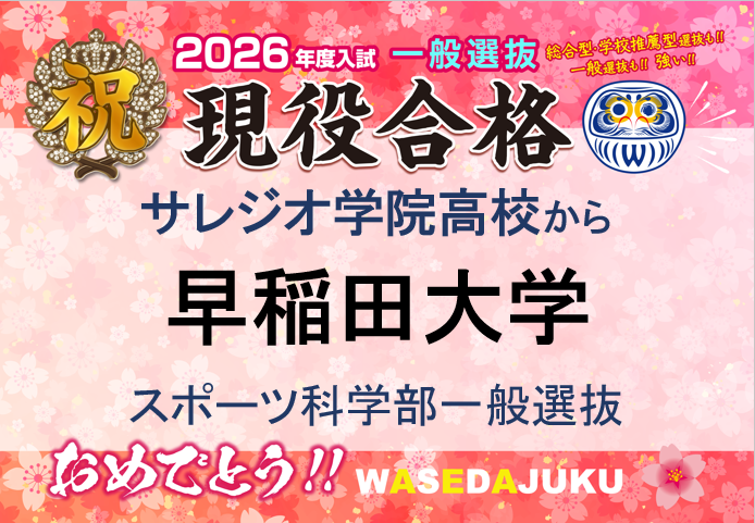 【合格速報】サレジオ学院高校から早稲田大学スポーツ科学部に一般入試で現役合格です!