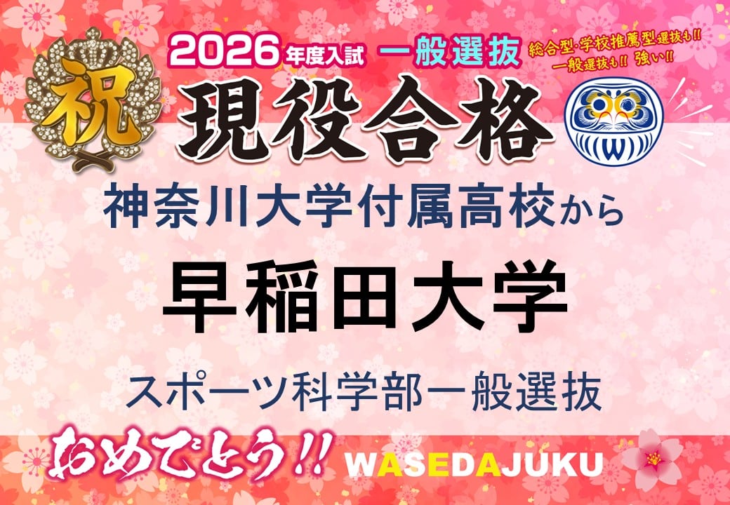 【合格速報】神奈川大学付属高校から、早稲田大学スポーツ科学部に一般選抜入試で現役合格!