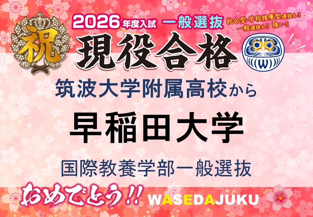 【2026年度入試 現高3生】筑波大学附属高校から早稲田大学国際教養学部へ一般選抜で現役合格!