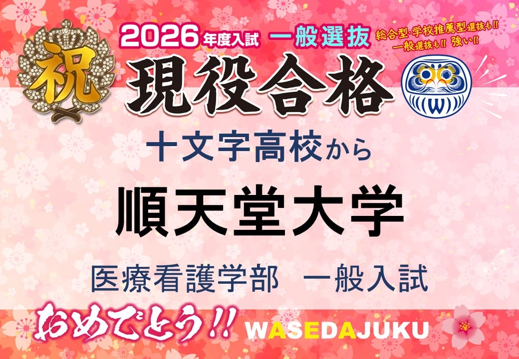【2026年度入試 現高3生】 十文字高等学校から順天堂大学医療看護学部看護学科へ一般選抜で現役合格!