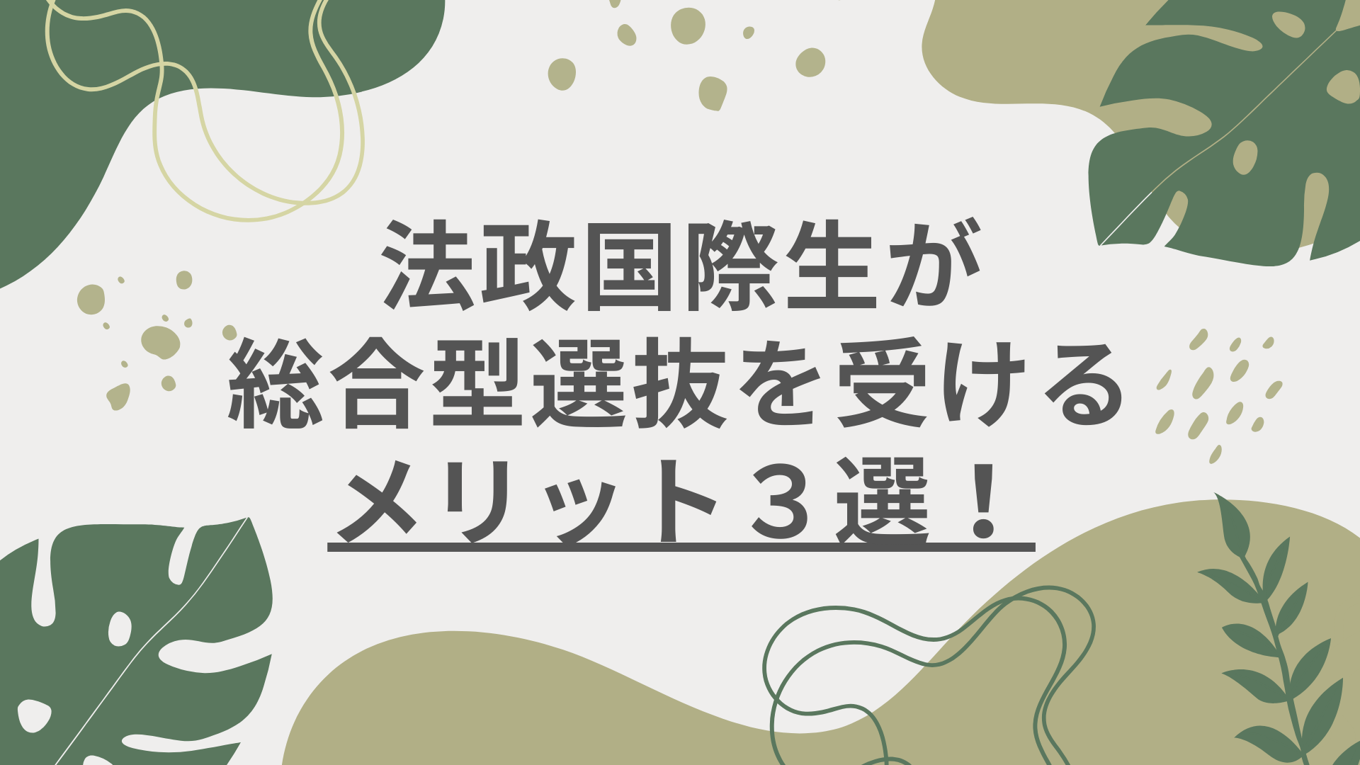 【高校別】総合型の活用方法を教えます!~法政国際生編~
