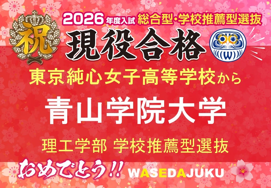 【合格速報】東京純心女子高等学校から青山学院大学理工学部に学校推薦型選抜で現役合格です!