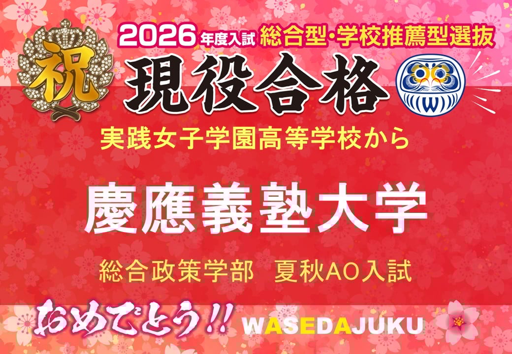 【2026年度入試現役合格速報】実践女子学園高等学校から、慶應義塾大学総合政策学部に夏秋AO入試で現役合格!