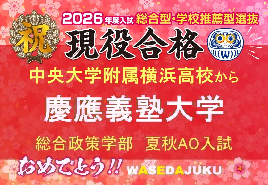 早稲田塾津田沼校より、現役合格速報です!慶應義塾大学総合政策学部へ夏秋AOで現役合格!