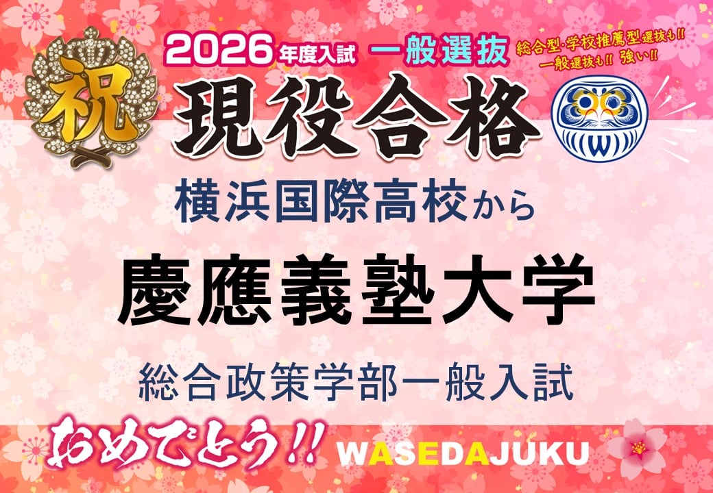 横浜国際高校から、慶應義塾大学 総合政策学部総合政策学科に一般選抜で現役合格です!