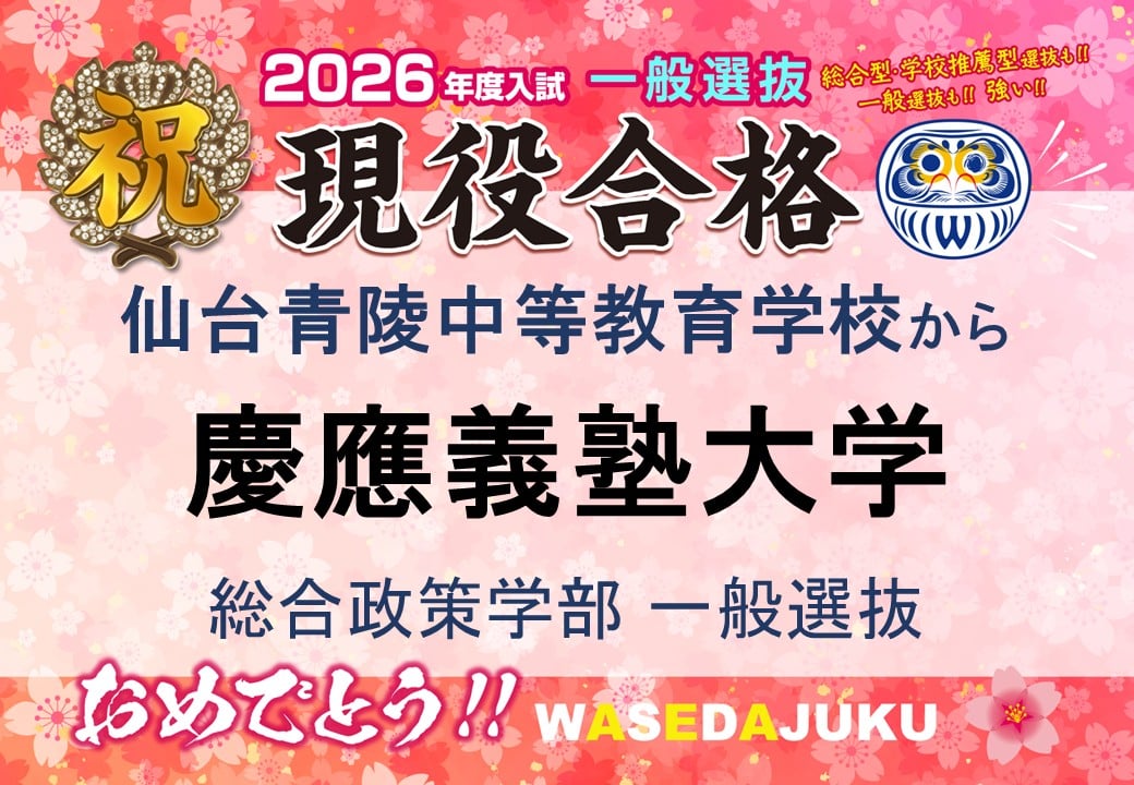 【柏校】仙台青陵中等教育学校から、慶應義塾大学総合政策学部へ一般選抜で現役合格!