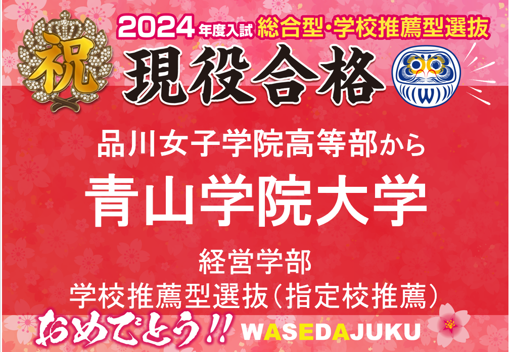 【2024年度入試 現高3生】品川女子学院高等部より青山学院大学経営学部へ学校推薦型選抜(指定校制)にて、見事現役合格!