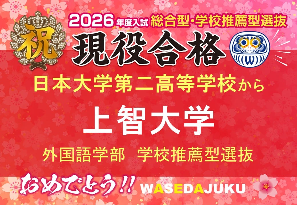 【合格速報】日本大学第二高等学校から上智大学外国語学部に学校推薦型選抜で現役合格です!