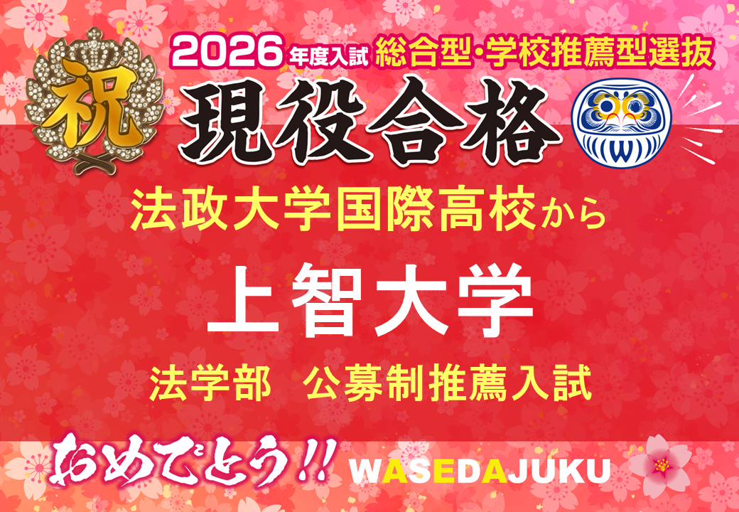 【2026年度入試 現高3生】法政大学国際高等学校から、上智大学法学部法律学科へ公募制推薦入試で現役合格!