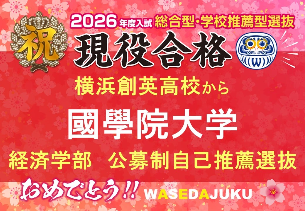 みなさんこんにちは。早稲田塾横浜校担任助手の根里妃代(成城大学文芸学部マスコミュニケーション学科3年・八千代松陰高校卒・早稲田塾44期生)です。本日も、横浜校に届いた嬉しい合格報告を皆さんにお知らせします!