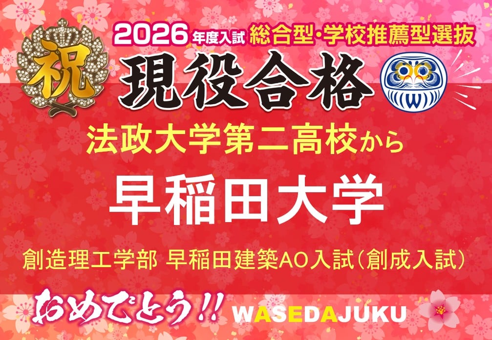 【2026年度入試 現高3生】法政大学第二高校から、早稲田大学 創造理工学部へ早稲田建築AO入試(創成入試)で見事現役合格!