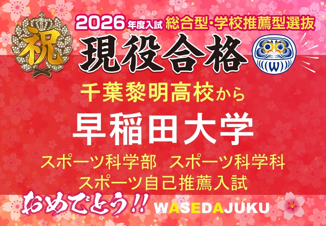 【2026年度入試 津田沼校現役合格速報】千葉黎明高校から、早稲田大学スポーツ科学部へスポーツ自己推薦入試で現役合格!