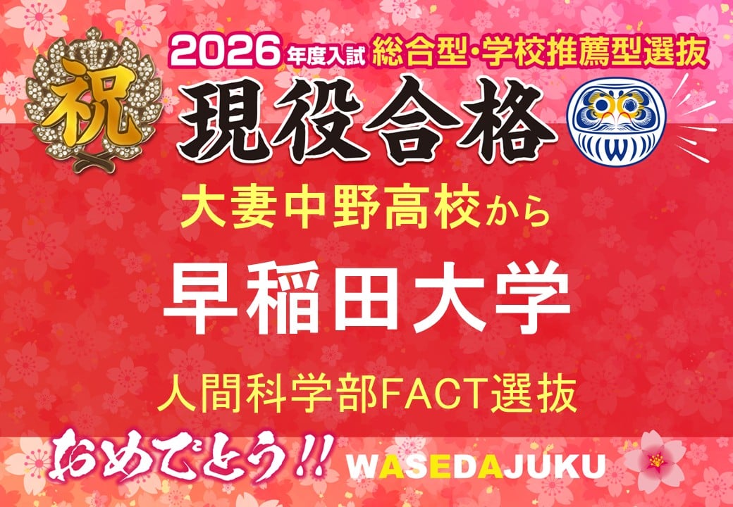 【2026年度入試 現高3生】大妻中野高校から、早稲田大学人間科学部人間情報科学科にFACT選抜で現役合格!