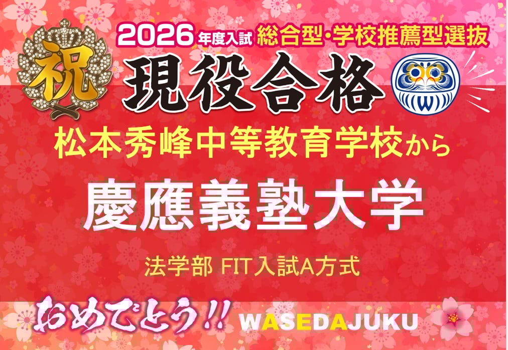 【2026年度入試 現高3生】松本秀峰中等教育学校から、慶應義塾大学 法学部へFIT入試A方式で見事現役合格!