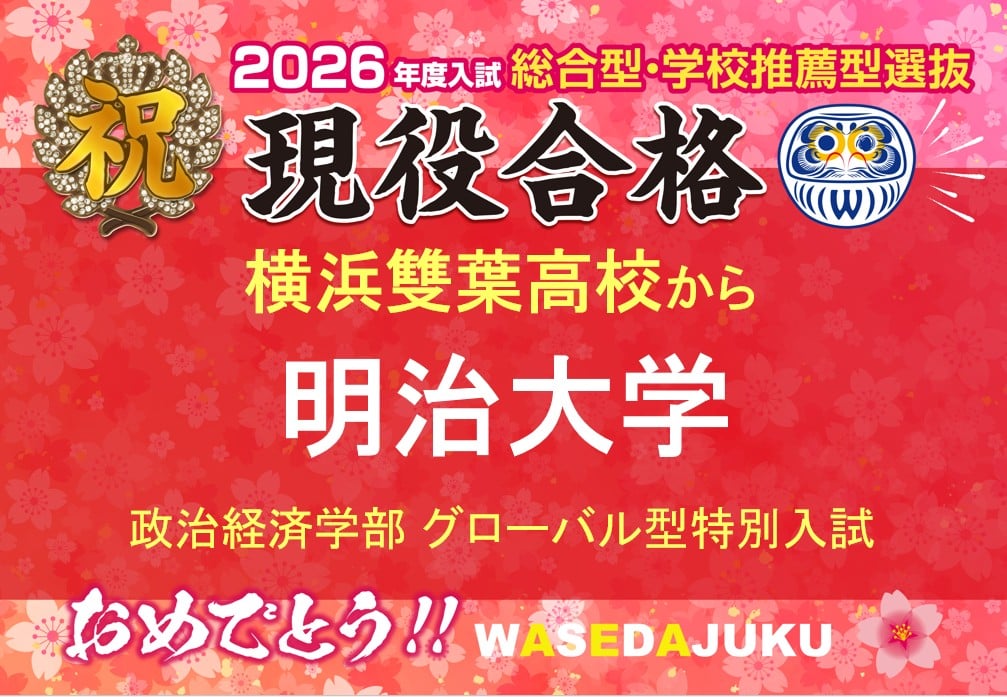 【2026年度入試 現高3生】横浜雙葉高校から、明治大学 政治経済学部へグローバル型特別入試で見事現役合格!