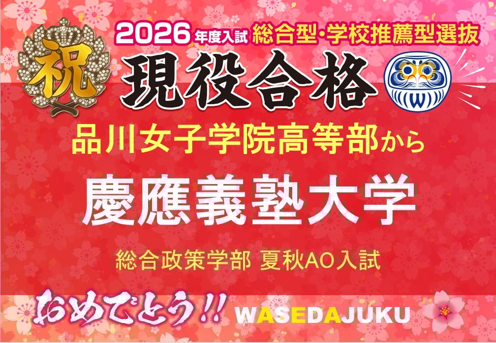 【2026年度入試 現高3生】品川女子学院高等部から、慶應義塾大学 総合政策学部へ夏秋AO入試で見事現役合格!