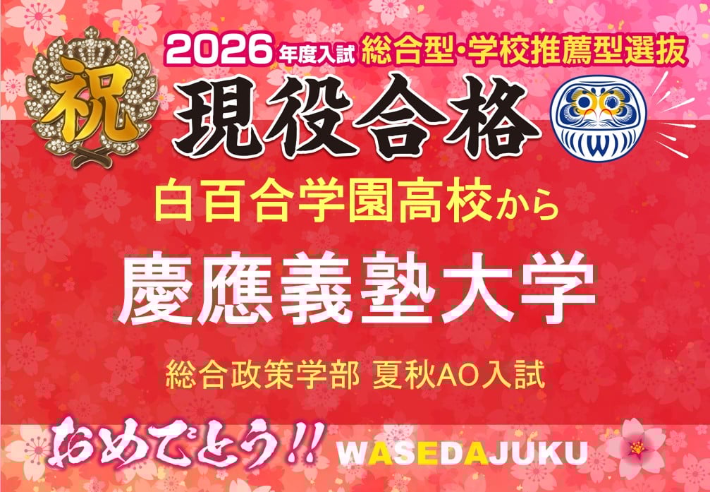 【2026年度入試 現高3生】白百合学園高校から、慶應義塾大学 総合政策学部へ夏秋AO入試で見事現役合格!